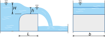 - 2 · H ≤ L ≤ 12 · H : oltre il limite inferiore lo stramazzo si avvicina a quello a soglia stretta con una efflusso maggiore, oltre il limite inferiore fenomeni di attrito sulla superficie della soglia diminuiscono l’efflusso.